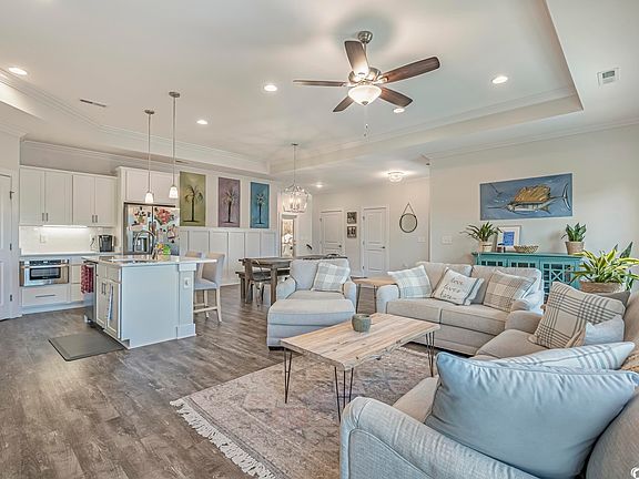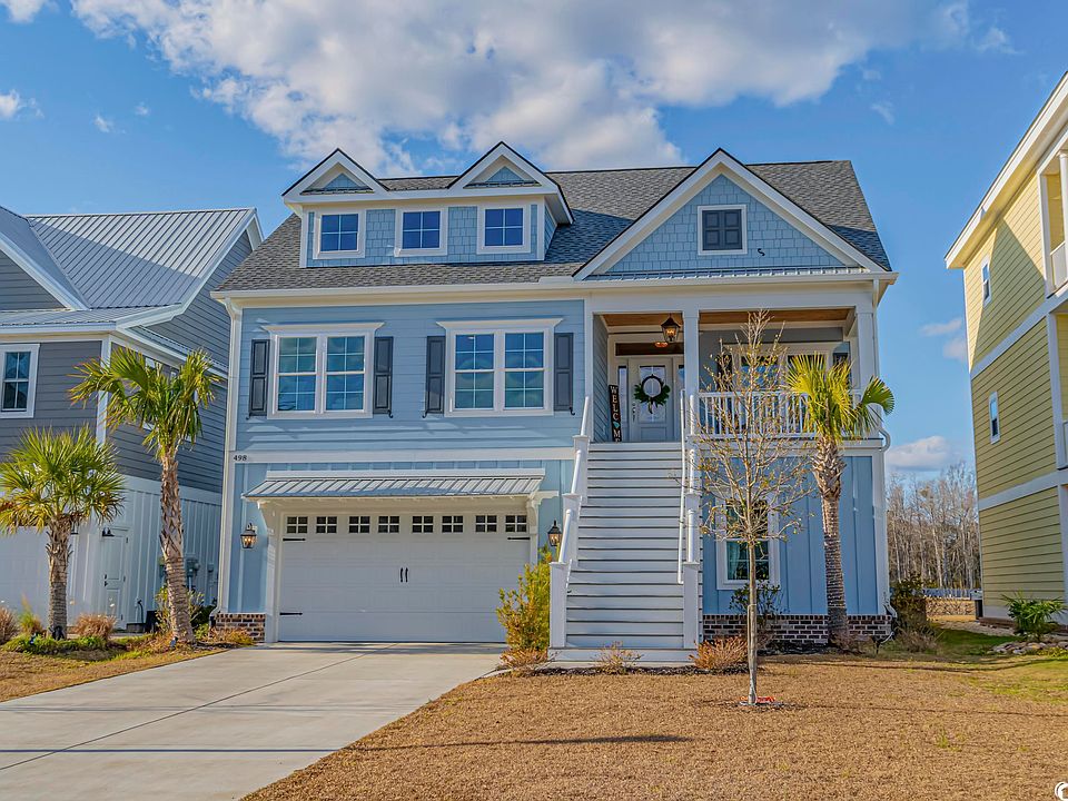 If you're looking for a custom built home but don't want to wait, look no further. This less than one year young custom built home is in impeccable condition and offers everything you could need in a plan. Stunning curb appeal greets you when you arrive at 498 Harbour View Drive. The cheerful color of this 2 story low county home is sure to stand out. When you walk up the front staircase you're greeted by a large front porch to enjoy intracoastal views. Upon entering, you will appreciate the open concept plan with ample natural light flowing in. The kitchen features a great island, stainless appliances, gas range and an ample walk in corner pantry. Your private master retreat is located upstairs with an en suite bath with a large double vanity and incredibly spacious walk in shower. On the rear of the second floor is a generous back porch with access down a back staircase to your large back yard. This space is perfect for entertaining, catching spectacular sunsets and just relaxing. Downstairs features 2 more large bedrooms and 2 full baths, as well as access to a covered back porch perfect for outdoor dining and more entertaining space. Boardwalk on the Waterway community includes a boardwalk running the full length of the community on the Intracoastal Waterway, gazebo, private boat ramp, day dock, and gated outdoor boat storage. You're also located conveniently close to shopping, dining, schools, medical care and the beach. Schedule your showing today.