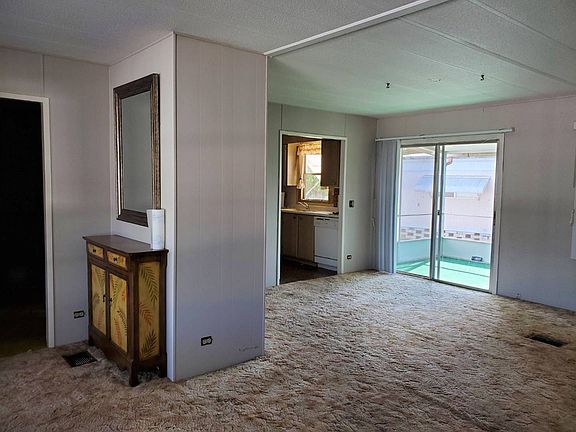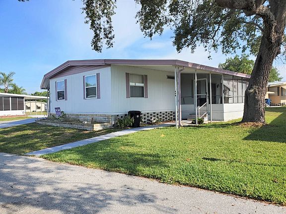 JUST LISTED $13,500 UNFURNISHED Corner lot home with a split floor plan. 3-bedrooms and 2-bathrooms. Long side driveway, carport and storage shed. Stepping inside the home from the carport you enter the living room. The living room is spacious and can accommodate a large TV. Large dining room/ office area with built in cabinets and drawers giving you extra storage space. The kitchen has a pantry, white appliances, a double sink and plenty of cabinet/counter space. Off of the kitchen is another dining area with sliding glass doors to the screened side lanai. Laundry area is inside the second dining area. The home does need a washer and dryer. The guest bathroom is a tub shower combo with ceramic tile floors. Both guest bedrooms are spacious with nice sized closets. Master bedroom is large and can accommodate a king size bed. Ensuite bathroom has a large vanity with a step-in shower. This home is a fixer upper and needs work. Remodel has started but not finished. Flooring needs updated, shower tiles needs repaired, painting needs finished.....make it your own! Colony Cove is an age qualified (55+) five-star resort community of manufactured / mobile homes. The "Cove" boasts 5 clubhouses, 5 heated pools, a riverfront pavilion and private fishing pier, a private marina, a fenced dog park (very pet friendly), tennis, shuffleboard, new pickleball courts, 2 new fitness rooms, 24 hour patrol, clubs for every interest, and much more. There are daily planned activities throughout the park. Bottom line, if you get bored here, it's your own fault!! The lot rent in Colony Cove is based on the homes' location. While the monthly rent may not be the lowest around, it's by far the best value for the money. Not only does the monthly rent cover all of the amenities of the community listed above, it also covers almost all other monthly expenses such as; water, sewer, trash pickup, all property taxes, cable, lawn maintenance. . .pretty much every monthly expense except electricity. The current lot rent on this home is estimated at $879.49 per month. All listing information given to us is considered appropriate and reliable but always recommend Home Inspections by independent companies who have a background and thorough understanding of manufactured homes. We cannot guarantee the accuracy of information given to us or the condition of the home. Lot rents are determined by the community office not our company.