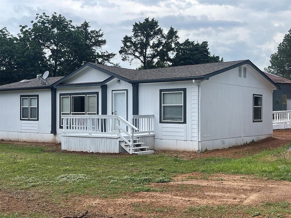 A great home and shop or party barn at the edge of Beautiful Lake Texoma with walking path across road to corp property and lake. Solitaire double wide on piers. 1.4 acres to play, build a home, build another shop, tons of room to play here at the lake! Open floor plan, nice larger rooms, great windows, 3 porches, deck, Privacy, storage shed and 1200sq ft shop with electric set up as a party barn, could use as shop, garage, party barn, room for all of your toys, short drive to Mill Creek Marina, within 20 min of Sherman or Denison, 10 minutes to Hwy 289 and another 30 to Frisco. Sought after Pottsboro school district, great arched walk bridge to house off of drive. Seller is replacing all carpeting thru out house and all fixture knobs. If you are a cook, you will love this kitchen, tons of counter space, cabinets and a great pantry, Utility room opens up off of dining and master bedroom. Possible lake view if a 2 story build. New paint and luxury vinyl plank, gravel on roads.