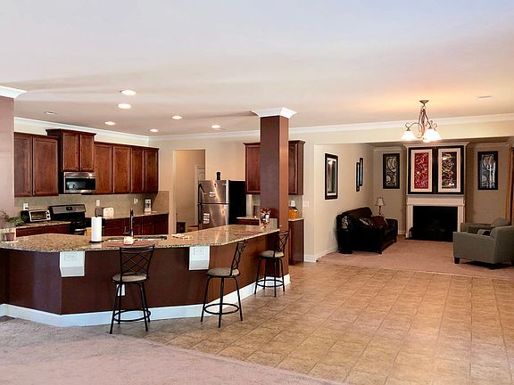 - Kitchen Features: Breakfast Bar, Cabinets Stain, Eat-in Kitchen, Pantry, View to Family Room, Kitchen Island, Pantry Walk-In, Breakfast Room, Solid Surface Counters, Keeping Room
