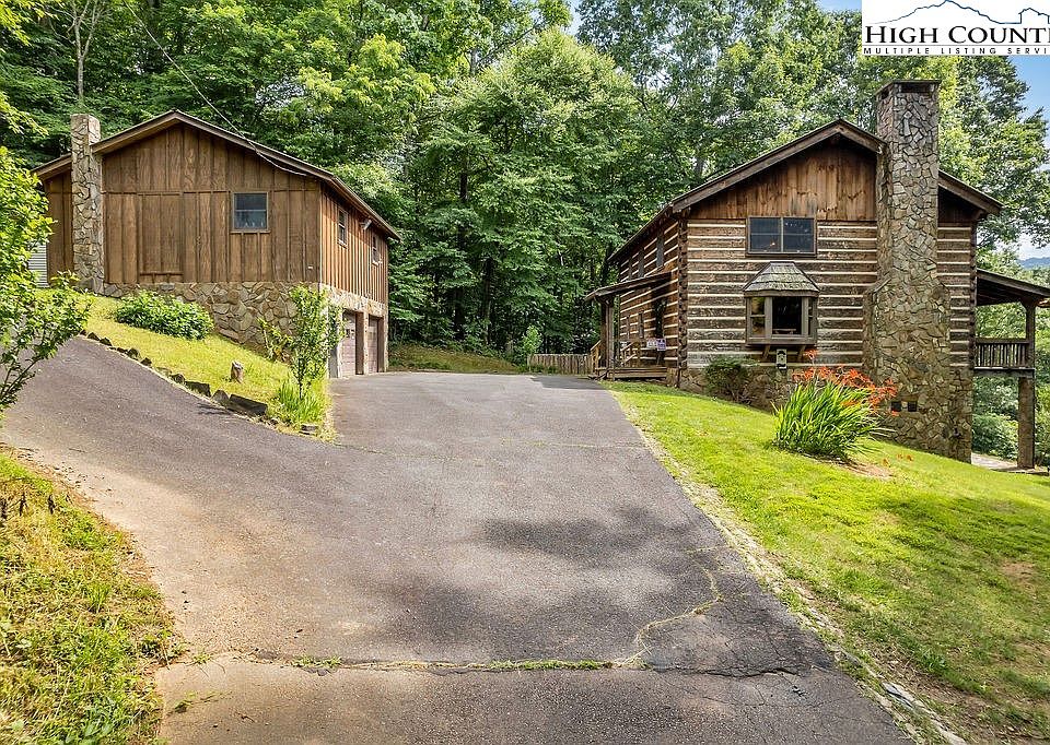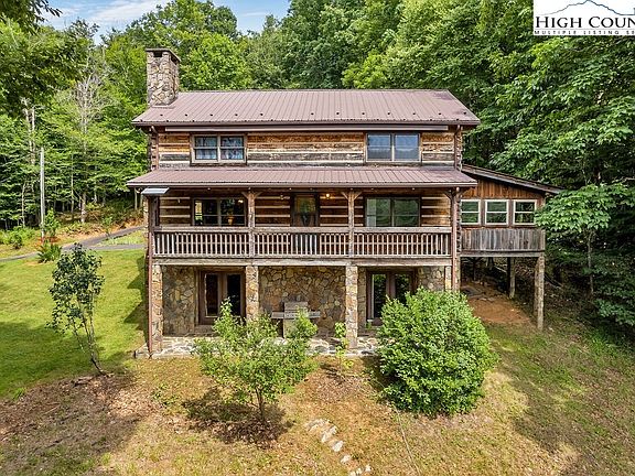Rustic cabin sitting on unrestricted 4.5 acres with views of Phoenix Mountain. Great cabin featuring 3 bedrooms, 2.5 baths, open loft, cathedral ceiling w/wood beams, two beautiful stone fireplaces, wet bar, family room, game area, sunroom w/hot tub, oversized 2 car garage with workshop above garage and ATV shed. This would make a great investment property for long or short rentals. Located near the North Fork of the New River offering some of the best trout fishing in North Carolina.