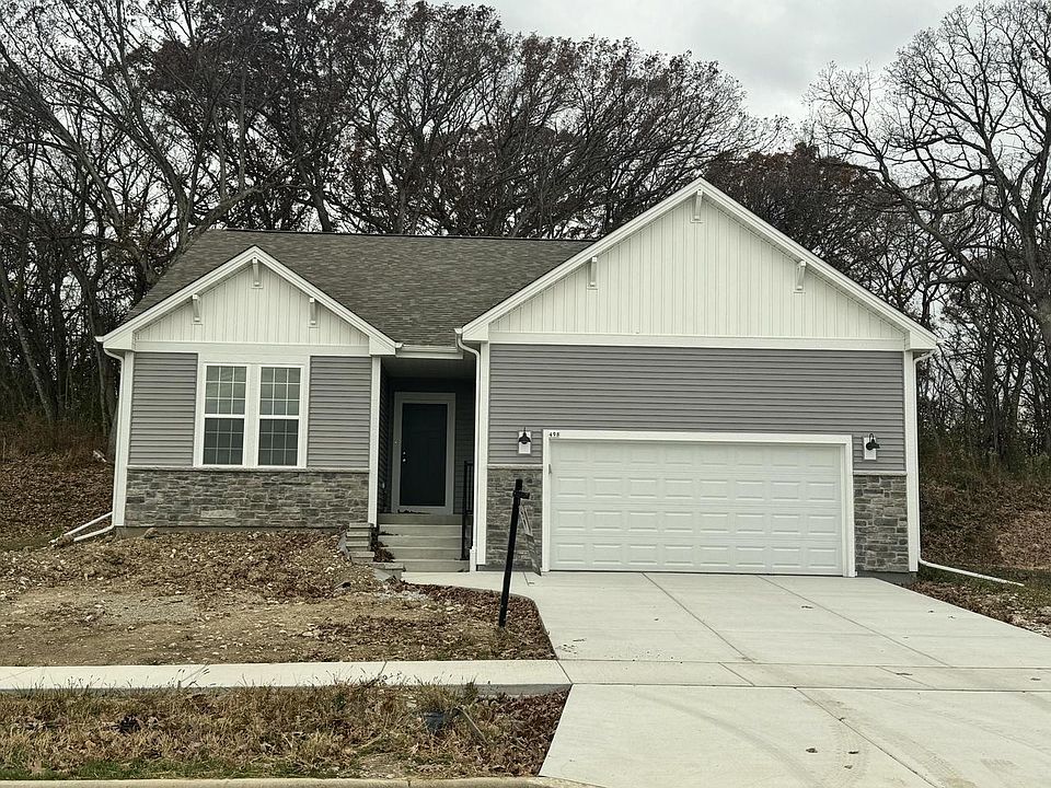Welcome home to The Laurel by Stepping Stone Homes, an award-winning home builder. Open floor plan features 3 Bedrooms, 2 Bathrooms and a 2 Car garage. he kitchen comes w/ quartz countertops, maple-stained cabinets, and LG appliance package. LVP flooring in kitchen, dinette, and great room. You will find quality craftsmanship throughout such as 2x6 construction exterior walls, 9' first floor ceilings, and passive radon system. We offer a total Kohler home experience. The Focus on Energy program provides each home with a Certified Energy-Efficient Certificate stating that our homes are more energy efficient than current WI code. Rendering may differ from actual exterior palette.