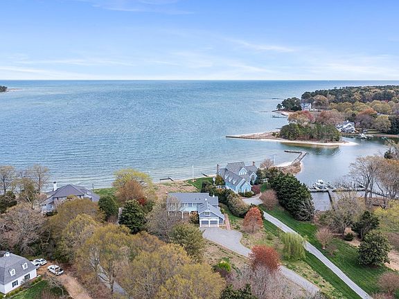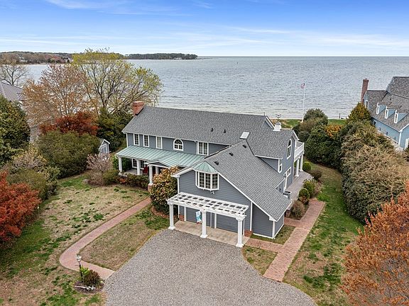 Magnificent Views & pristine SAND BEACH that spans the width of this exceptional waterfront home on Indian Creek. With immediate access to the Chesapeake Bay, this rare offering offers endless water views that words can not describe. Nestled in the prestigious enclave of Blue Water Point, a private community of 8 fine homes, residents enjoy exclusive amenities, including a community pool, tennis courts, & community well. Your own private boat slip at the community dock provides access to the water. Designed for a relaxed river vibe, the home features multiple gathering spaces: A spacious living room, anchored by gas fireplace, w/ sliding doors leading to a porch and an expansive backyard: A cozy family room, with a wood-burning fireplace & access to a back patio: A bright, open kitchen w/a dining bar, SS appliances, a generous pantry, & ample counter space: A utility/mudroom with built-in storage—ideal for coming in after a day on the water or outdoor adventure. The primary suite includes an ensuite bath, multiple closets, and a clever ante room/office area with private access. 2 guest bedrooms & versatile private guest suite offer additional sleeping quarters, office space, or a library. Plenty of room for family & extended guests. Additional features include electronic storm shutters on the back of the home for convenience & peace of mind, new HVAC system & fresh paint throughout. High-speed Internet available. Main photo edited to represent lawn in summer. Waterfront living at this level is rarely available—make this stunning Chesapeake Bay retreat your home today.