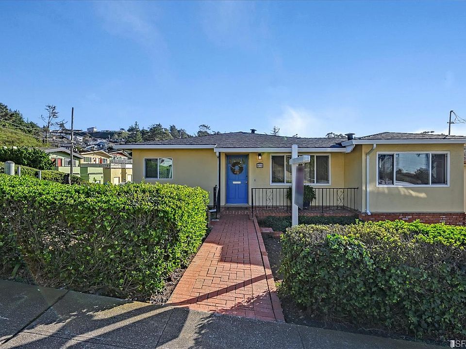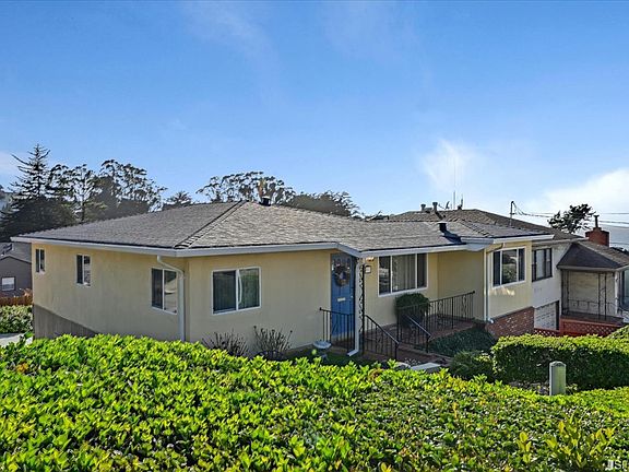 Immaculate corner house with a deck and ocean view! Remodeled kitchen w/ stainless steel appliances and baths, new interior and exterior paint, paved driveway, laminate floor, dual pane windows, doors and mirrored closets. Additional features: new water heater, roof, gutters, privacy fence, sliding door, and lighting fixtures. There is a work bench, extra storage areas in the two car garage plus parking for 8 or more cars or RV/ boat. Conveniently located near Pacifica Beach, schools, shopping centers and freeways!