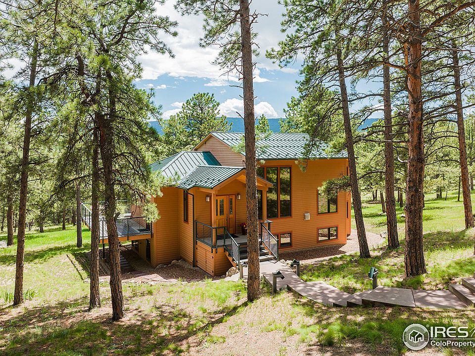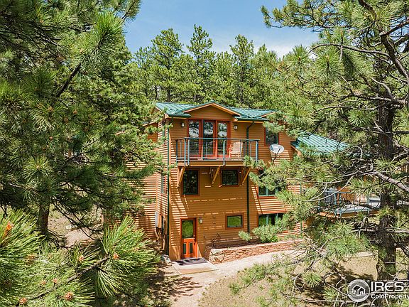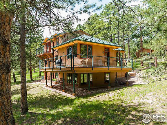 Impeccably maintained & incredibly private mountain oasis set-back on nearly 3-ACRES w/ lovely landscape/rock-outcroppings, just 15 mins to Boulder! The pristine home was completely renovated down to the studs in 2001 w/ No Detail Left Behind & offers custom touches thru-out. A Multi-purpose 800 SQFT det. workshop/outbuilding is fully finished, heated & has oversized garage door ideal for boat/RV parking. Cozy interior w/ radiant & baseboard heating, vaulted ceilings, wood flooring, maple wood trim & windows galore that bring the outdoors in. Custom kitchen w/ Lg center island, slab granite counters, custom maple cabinetry & SS KitchenAid appl. opens to dining area, living room w/ fireplace & TREX deck w/ stainless steel cable railings. Spacious upper floor primary suite w/ balcony, 5-PC bath & 2 walk-in closets. Walkout lower level offers 2nd BDRM, Bath & 2 office spaces, 1 of which could easily be converted to 3rd BDRM. 2-CAR det-garage is fully insulated w/ loft space for storage.