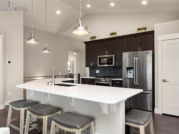 Wow! A brand new home even easier to move right into than if you bought from the developer! Seller's change of circumstances makes this an AWESOME opportunity for one lucky Buyer! Gorgeous 5BR, 3BA, 3CAR garage home in coveted District 12. Rare new construction in idyllic mountain setting, with stellar views. Take in the twinkling city lights from your new deck, and the inspiring mountain scenery out virtually every window. And even better than completing with the builder--because current owner has already finished the... custom wet bar, custom concrete pad for hot tub, custom window blinds on all main windows, gas for grill, and has set up Nest & Ring Systems for you, too! Imagine the ease of moving right into this beautiful home with perfect spaces, high-end quartz counters, high-end cabinetry, stylish designer finishes, high-end appliances, an impressive stone fireplace, & perfect basement family room, ready for all the fun, relaxation or entertaining you can imagine. Plenty of room for recreation, major media or gaming space, & the stylish brand new custom wet bar, never even used! This home is truly like brand new, because it basically is! Current owners spent next to no time here, as business obligations in another state have kept them too occupied to truly move in. Brand new furnishings purchased for the home may be negotiable, too! Star Ranch is a rare new-construction opportunity in District 12. Gated, in a coveted, pristine setting that celebrates the natural beauty of real Colorado living-- yet minutes to the restaurants, museums & charm of downtown Colorado Springs, or to the famous Broadmoor resort, or the fabulous Country Club of Colorado. Hiking & biking trails are all within mere minutes. Don't wait-- this rare home can give you the life of your dreams!