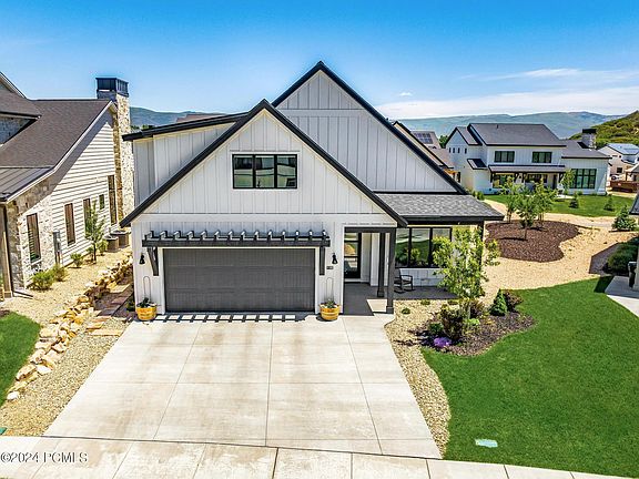 Set in the picturesque mountain town of Midway and located in the highly sought-after and brand new community of Remund Farms. This pristine home greets you with neutral colors, crisp paint, natural wood beams, warm wood tone floors and is adorned with perfectly placed accent walls throughout the home that lend beautifully to the overall aesthetic. The open floor plan provides plenty of natural light and ease of entertaining with the dining and family rooms conveniently adjacent to the daylight chef's kitchen complete with timeless cabinetry, quartz countertops, subway tile backsplash, a huge eat-in island, walk-in pantry, double wall ovens and built-in desk area which make this kitchen dually functional. The main floor owner's suite features an ensuite bathroom, double vanity sinks, enclosed commode, incredibly roomy shower and a walk-in closet that provides a very convenient pass-through to the laundry room. An additional 2 bedrooms and full bath are located on the main level as well. Upstairs you will find a fabulous secondary family room that is perfect for entertaining or enjoying relaxing movie nights at home, especially given the built-in wetbar. A very spacious guest room, full ensuite bath, storage closets and a flex space currently utilized as an exercise room are also featured on the upper level. Outside, get ready to relax and unwind in your beautiful east-facing backyard oasis complete with pergola covered patio with built-in benches & bbq area, and a cozy fire pit surrounded by expertly designed rock retaining walls and completed landscaping. Or venture to the front porch that displays pride of ownership to enjoy the sunset in the evening. Come and enjoy all that Remund Farms has to offer from the peaceful walking trails, parks, large open spaces, activity barn, community pool, clubhouse, gardens, and playgrounds. Next to 3 championship golf courses, Deer Creek Reservoir and the tranquility of the wandering Provo River.