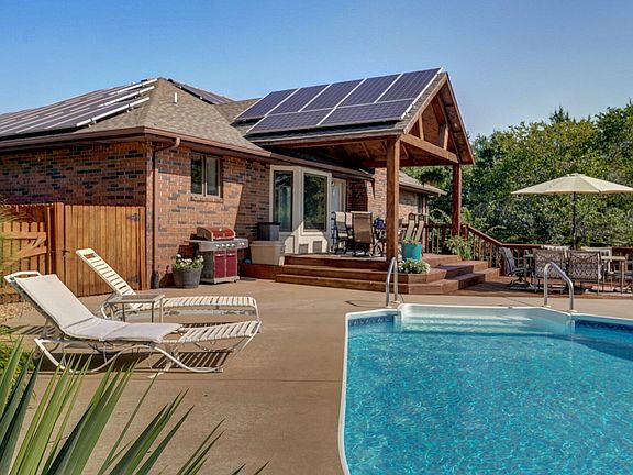 Welcome to your private oasis in the sought after Ozark School District. This all-brick home is nestled on 4 meticulously manicured acres, offering the perfect blend of tranquility and elegance. Boasting 3 bedrooms and 2 full baths, two car garage, wood burning fireplace and basement area with a large John Deere room--a dedicated space for all your outdoor and gardening needs, keeping your tools and equipment organized and easily accessible. Also the home is equipped with Solar Panels that offer year around LOW utilities. This residence provides ample room for comfortable living and entertaining.When you enter the front door you will discover a warm and Newly Updated interior with classic tile and luxury vinyl plank flooring that adds to the charm and modern conveniences. The open-concept living area features beautiful natural light, enhancing the home's welcoming ambiance. The kitchen has been updated with beautiful granite countertops and updated backsplash along with ample storage and pantry area.One of the stand out features of the property is the amazing pool area. Sit comfortably under the large wooden beamed back deck that overlooks the stunning in-ground pool, perfectly positioned to enjoy the serene surroundings. Whether you're hosting a summer barbecue or unwinding after a long day, the pool area is designed for enjoyment and leisure..The expansive 4-acre lot offers both privacy and space, surrounded by lush pine trees that surround the property, a Pecan orchard, apple and pear tree all creating your very own secluded retreat. This home provides not just a place to live, but a lifestyle to enjoy.Don't miss this rare opportunity to own a beautiful brick home with a private pool and John Deere room, orchard, mature trees set in a picturesque and tranquil setting. Schedule your visit today and experience all that this remarkable property has to offer!