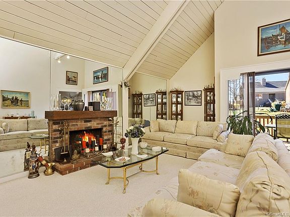 Spacious, Oversized Whittier located in private cul-de-sac, in the desirable, maintenance-free Oronoque Village. Light and bright entry with huge windows and coat closet, Eat in Kitchen with pantry and tons of storage, Large Dining Room/Living Room combination with soaring vaulted ceiling, wood burning fireplace(equipment included), sliding glass door leading to oversized deck. Office space is off of LR. MBR with huge walk in closet, attic with pull down stair access and private master bath. 2nd bedroom with closet/currently being used as den. 2nd full bath on main floor with walk in shower. Lower level offers even more space for enjoyment with family room/recreation space, 3rd full bath, laundry room, plenty of storage space, workshop area, and oversized garage. Home is equipped with Central Vac, home safe and Stairglide. This is the largest style unit in the complex **Complex located on a PGA golf course, and offers 3 pools, 2 beautifully updated clubhouses, saunas, fitness center, indoor driving range, 4 tennis courts, 2 pickle ball courts, and tons of clubs and social activities. A portion of bill for high-speed cable TV, internet and phone service is included with common charges. (*Please note- Quarterly district tax is $590 and may be tax deductible)