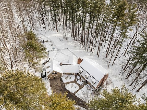 Distinctive Farm House Colonial nestled on a lush 5+ acre lot with access to conservation land & trails, this meticulously maintained home offers everything you could desire & more. Featuring a fantastic floor plan ideal for entertaining, 1st floor includes a spacious kitchen with an island, walk-in pantry & new appliances. Multiple living areas, including LR, DR, & cathedral ceiling FR with an impressive stone fireplace, provide ample space for relaxation. A beautiful sunroom with access to the large deck adds a touch of tranquility while you enjoy the sound of the brook. The private yard has an herb garden, raised beds & greenhouse. Upstairs, find a primary suite & 3 other spaciously sized bedrooms that share a main bathroom. The attached 2-car garage offers a bonus room above with its own entrance offering versatility. The large unfinished walkout basement presents possibilities for customization & expansion. A whole-house Generac ensures year-round comfort and peace of mind.