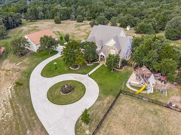 Private Custom Estate that borders and is accessible to LBJ Grasslands with stocked tank, mature trees and abundant coastal! Quality finishes and designed for a large family with room for privacy & plenty of entertaining. Floorplan featuring media room, family room, formal living & dining, study, craftroom and oversized bedrooms. Kitchen is filled with elegant cabinetry, large center island and double oven. Swim in the saltwater diving pool, fish, hunt, ride horses or raise livestock! This home has it all! Property has a seperate full living quarters inside barn by main home as well as a man cave with half bath. Livestock barn is currently used for show animals and has removable pens with water & electric.