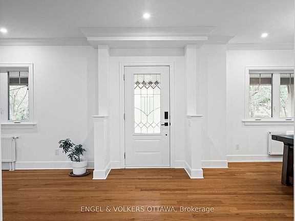 This impeccably updated, character-filled property offers timeless elegance and modern luxury in one of the most prestigious areas of the Glebe. The covered front porch framed by craftsman-style columns leads to a thoughtfully updated interior where warm-toned hardwood floors, built-in speakers, and deep crown molding set an elevated tone. The main level features a spacious living area anchored by a red brick gas fireplace and seamlessly flows to the refined dining space with a built-in sideboard and statement lighting. The chef-inspired kitchen boasts granite countertops, two-tone cabinetry, stainless steel appliances, a professional-grade range hood and a pot filler tap. A bright mudroom with custom storage leads to the private backyard. The second level offers a primary suite with two walk-in closets and a luxurious ensuite featuring a freestanding soaker tub, frameless walk-in shower, marble dual-sink vanity, and a heated towel rack. A spacious second bedroom, an additional elegant full bath, and a cozy 3rd bedroom (currently a den) with a gas fireplace and built-ins complete this level. The third floor showcases two more charming bedrooms with unique sloped ceilings, abundant natural light, and a 3-piece bath. The fully finished basement adds exceptional functionality with a custom laundry room, a dedicated fitness space, a bonus home office/recreation room, and a stylish powder room with exposed brick. Vintage-style doors and thoughtful millwork add character throughout this level. Outside, enjoy a professionally landscaped backyard with a large interlock patio, an oversized detached garage with a loft for storage, and a heated parking pad. Enjoy direct access to the Rideau Canal pathways - perfect for cycling and leisurely strolls. Within walking distance to Bank Street, Lansdowne Park, and an array of charming cafés, restaurants, and boutiques, this property offers the perfect balance of serene, natural beauty and dynamic urban convenience.