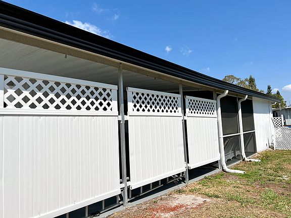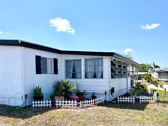 498 Ridgewood Ln, Colony Cove South Section. Age qualified 55+, pet & golf cart friendly. Homes are on leased lots; community residency approval is required. This updated manufactured home feels like home! It is offered partially furnished with turnkey supplies and ready is to move right in! It features two bedrooms, two updated bathrooms AND a flexible use Florida room accessible from the living room with a private entrance. It has hard glass windows & an auxiliary AC unit. UPDATES since 2022: ~New Membrane Roof (transferable warranty) plus secondary roof sealed ~ ~New HVAC and new insulated ducts ~ ~New 3/4 in. subfloors with new laminate ~ ~New insulated drywall ceilings with smooth knock down texture & crown molding ~ ~New ceiling fans ~ ~New electric panels (main & auxiliary) ~ ~Newly updated kitchen cabinets & counter tops, new LG refrigerator, new dishwasher, sink & faucet ~ ~New washer & dryer (located inside of home) ~ ~Freshly painted interior & exterior plus driveway ~New breathable vinyl skirting, downspouts & driveway privacy panels ~ ~Tie downs were updated in 2016 in the State of Florida Wind Mitigation Program ~ For your convenience a 4 Point Insurance Inspection has been completed by a third party licensed inspector and will be provided to prospective buyers. This inspection covers the roof, HVAC, Electric & plumbing! The kitchen is user friendly with a deep Kohler sink & faucet plus plenty of cabinetry & workspace. One bank of the upper lighted cabinets have leaded glass doors on both sides of the kitchen and living room. The home is mostly smooth Sheetrock walls plus quality laminate floating floor covering throughout. You will love the side set screened lanai for a comfy outdoor space to enjoy your morning coffee! The home is located on a corner lot & has a roof overhang in the front for yet another place to sit in a shady spot outdoors. Manatee Hall, Pool & Shuffle courts are nearby plus many other amenities on the South Section such as the outdoor Pavilion with fishing pier and a fitness center and the dog park. Florida MH Sales, LLC cannot guarantee or warrant the accuracy of this information, measurements or condition of any property. The buyer assumes full responsibility for obtaining all current rate of lot rent fees and pass-on costs. Lot rent is set by the community and is subject to change. The buyer is responsible for obtaining all rules, regulations, pet policies, etc., associated with the park from the community administrative office. Florida MH Sales, LLC is not responsible for quoting of fees or policies. Monthly lot rent of about $1020.23 includes: Lawn Care Water, Sewer & Trash Ad Valorem Taxes (For comparison, these 3 items are not always included in other communities) 24/7 Community Patrol Free Bus Trips to shopping & beach On Site Fire & Rescue On-site Management & Maintenance 2 On-site Fitness Centers Upkeep of all common areas & amenities. AMENITIES: It is a golf cart friendly & pet friendly community. There are 6 heated community pools, 8 halls/amenity buildings, many courts for tennis, pickle ball, shuffleboard & horseshoes, billiards, 2 state-of-the-art fitness centers, 2 libraries & a coffee bar. Do not forget the fishing pier & 100 slip Marina (nominal fee)! There are a multitude of clubs for most every interest including arts & crafts, boating, wood working, bowling, golfing plus many more! PET FRIENDLY: 2 per home; max 75 lbs each; non-aggressive breeds. There is a large split dog park (big/little dogs) for our canine friends. All this and much more! Contact us today for a private tour! Always a full calendar of things to do with golf cart parades, entertainment, dinners, dances, cards and games. Enjoy year around tropical weather, birds & flowers. Live where everyone else goes on vacation! a