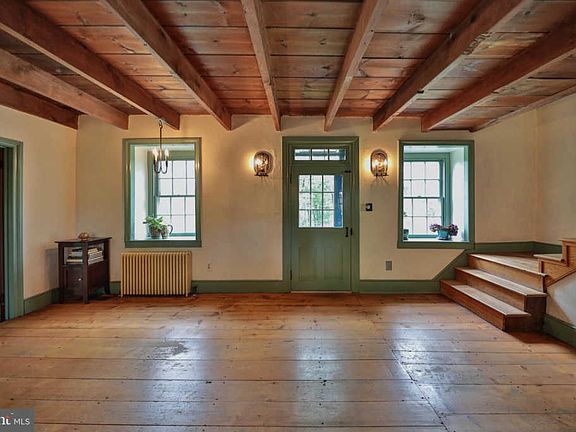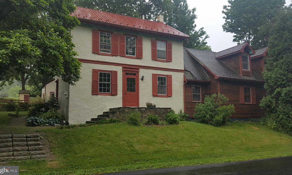 Historic rustic 1840~s farmhouse with wood floors throughout and a pinewood extension added in 1972. This picturesque setting includes three large outbuildings - a guest house/studio, a large two car detached garage with 2nd floor, and summer kitchen/garden shed all on 7.42 acres. This unique property is located next to the famed Rodale Institute in Kutztown. The farmhouse consists of a spacious living room with fireplace insert and an expansive country kitchen and dining area with modern appliances. The mud room with slate floor includes a half bath on the first floor. Master bedroom on 2nd floor of extension section of house features fireplace and master bath. The 2nd floor of the original farmhouse has two bedrooms, a full bath and a finished attic which is utilized as a large 4th bedroom. Guest house with pellet stove has bedroom and office space but could be used as an artist studio and is attached to an additional one car garage/workshop. The 7 plus acres includes a running creek, breathtaking scenic views and a two-tier patio allowing for large sitting areas and outdoor dining, all surrounded by flower beds. Take advantage of the nearby Rodale walking trail. This property has so much to offer. Call for details.