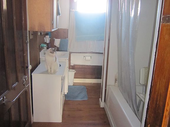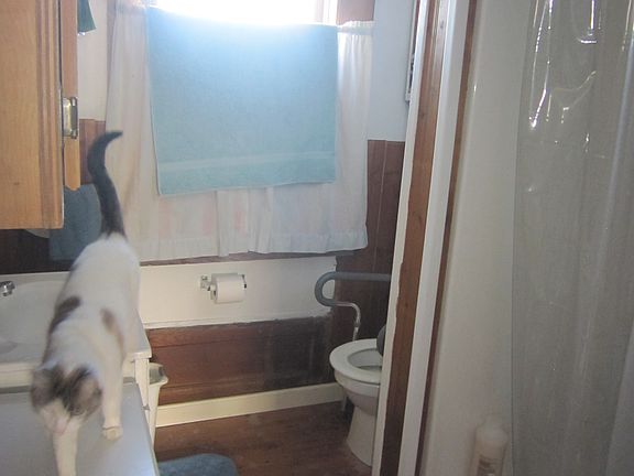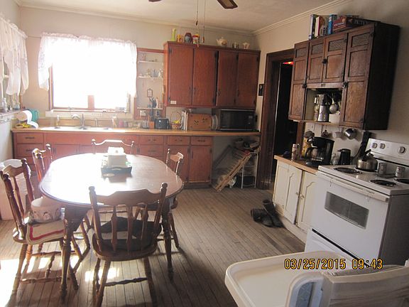 Original Colonial with wood floors, both hardwood and wide-board pine. Natural woodwork in living room with nice archway and window seat, dining room and kitchen. Eat-in kitchen, full bath on first floor, 3/4 bath upstairs. Furnace is forced hot air coal and wood combo installed in Dec. 2013. Handicap-accessible ramp installed in June 2013. Garage is quonset hut, 40' x 50' metal building. Large closed in area and entrance in the rear of house. Full basement with outside entrance. Full attic with stairs and entrance from second floor. Mostly wooded 26.5 acres with level area next to the house and halfway up the hill. Lots of road frontage. Deer and turkey roam in the back yard. Quiet country atmosphere, but three miles from schools, banks, restaurants, and grocery store.