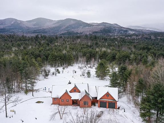 Enjoy the Magnificent Views of the Jay Mountain Range from this Private Contemporary Adirondack Retreat. This energy efficient home offers several green features, air transfer system, in-floor radiant heat & generator. Light casts through the dual French doors, numerous windows to fill every corner of this house. The natural beauty of the outdoors surrounds this entire home. There are two beautiful cut stone fireplaces on each level (gas/wood), cathedral ceiling, quality built throughout w/granite countertops (kitchen/bathrooms), stainless steel appliances, exotic wood floors, panty, mudroom, primary suite w/jetted tub & spacious tilted shower, PLUS room for company or airbnb. There is also a gas wood stove in the sunroom along w/infrared sauna, 2 lofts, gym above the garage, walking trails, surround sound, security system, trex deck & insulated Amish Shed 12x36 & much more. Being sold partially finished; ask for further details. Check out the Matterport 3D & YouTube Video too.