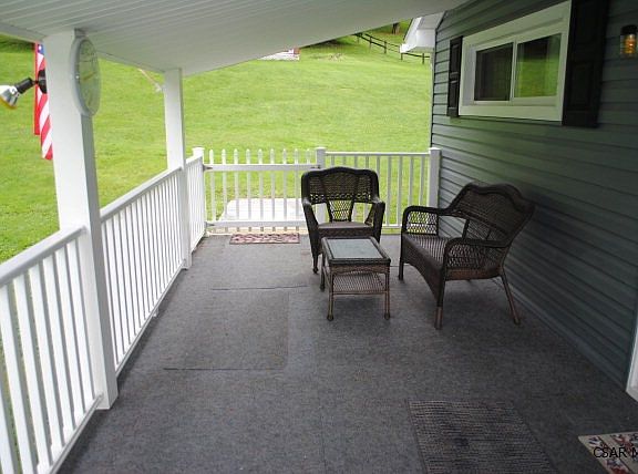 Very nice vinyl Ranch on half acre of land. Lovely country setting. Home features spacious living room, 2 bedrooms, eat in kitchen and 2 baths. Covered back porch, shed and 1 car garage. Newer furnace and hot water tank. In 2013 all new siding to the home, new steps & porch - carpet, storm doors, windows and shutters, roof, soffit & fascia, gutters and downspouts all completed. Come take a tour today!!!