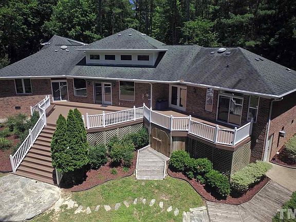 PRICE REDUCED! LAKEFRONT- Custom designed one level living home on 3+ acres with stunning views of the lake from nearly every room. Expansive deck for outdoor entertaining. Dock. Spacious flexible open floorplan. Soaring 10-15ft ceilings. Solid Hardwood Floors. Main Floor Master Suite. 2nd Fl. Bonus Room. NEW ROOF 2017! PERMITTED FOR 3BR SEPTIC. Oversized 2.5 car garage, ATT google fiber available in neighborhood! Great location. Minutes to 751/64/540/55. Low Chatham County Taxes. A must see home!