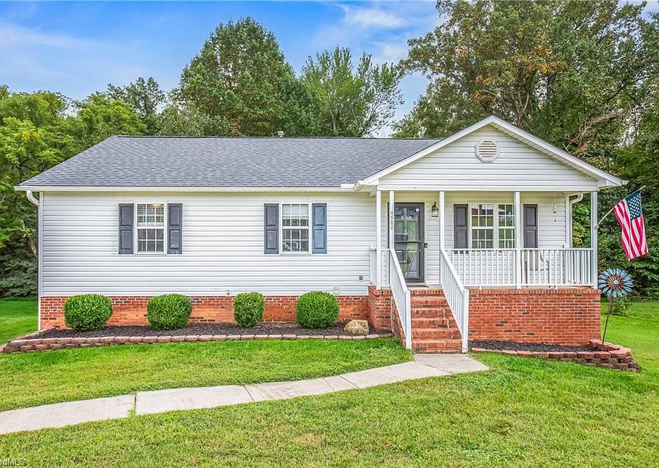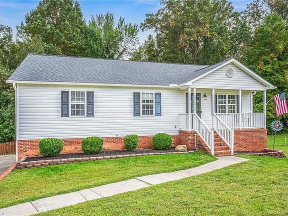 Adorable house with rocking chair front porch on dead end street in a convenient Kernersville location. Main level has 3 bedrooms and 2 baths with LVP flooring throughout the living room & kitchen. Spacious vaulted ceiling living Room with gas logs and connects to the kitchen and breakfast nook. Enjoy watching the deer from the large fenced in backyard or the deck off of the kitchen. Primary with en-suite that has separate shower, jetted tub and tile floors! The finished basement makes perfect space for a home office, gym, second living room or so much more! Brand new roof March 2023!