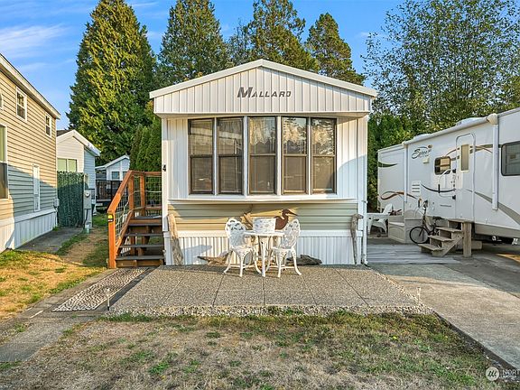 Rare opportunity to own this tidy, well-maintained home located in the gated, private community of North Bay Park. A 5 minute walk to Birch Bay beaches. Fully-furnished for a turn-key move-in. Enjoy the Birch Bay summers - 180 days a year of use. Kitchen features a range, refrigerator and microwave + dining. Living room with slider to side access. Patio with side lawn. Assigned parking space. Low dues cover - $160 - water/sewer/garage, common area maintenance, use of Clubhouse and Pool. Clubhouse offers pool table and shuffleboard, kitchen, laundry, shower and his/hers bathroom. Clubhouse has a TV with Comcast and wood-burning fireplace. 45 minutes from Vancouver and 20 minutes from Bellingham, North Bay Park is the perfect seaside getaway!