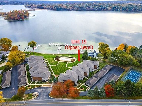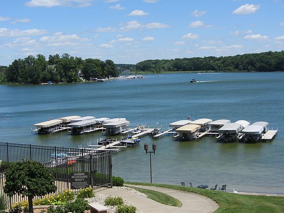 Updated and meticulously maintained condo on Lake James. Move in ready! Enjoy all that this complex has to offer. 300' of lakefront, community pier system, beach area, inground swimming pool, and a tennis court. This upper level unit features three bedrooms and two full bathrooms with an open concept living room, kitchen and dining area. Luxury vinyl plank flooring throughout the living room, dining area, entry and hallway. Living room boasts great views and provides access to a lakeside enclosed porch and deck. The kitchen was redesigned with Grabill cabinetry, quartz countertops, tile flooring, stainless appliances and a breakfast bar. The primary suite has a walk-in tile shower and three closets. The 3rd bedroom is currently used as a den, and allows access to the lakeside enclosed porch through a sliding glass door. Detached garage, all kitchen appliances, washer and dryer are included. HOA fees cover common area liability insurance, exterior maintenance, lawn care, swimming pool, piers, tennis court, trash and snow removal.