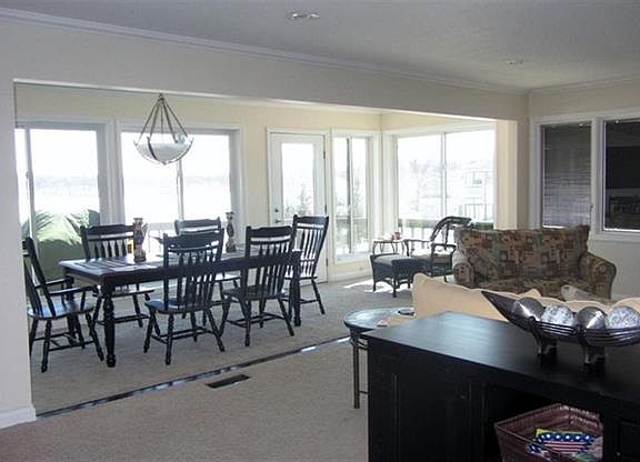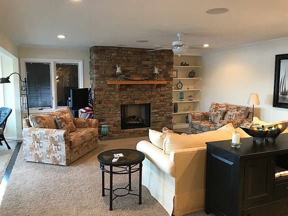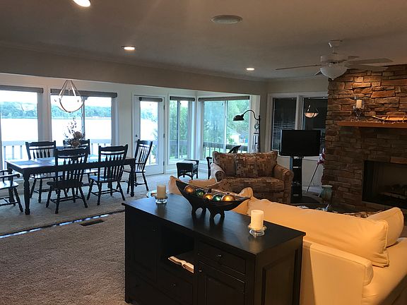 - Features: Appliances/Refrigerator, General/Security System, Interior/Walk-in Closet, Appliances/Range / Oven, General/Ceiling Fan(s), Heating - Fuel Type/Gas, Exterior Description/Brick, Roof/Asphalt Shingle Roof, Flooring/Wall to Wall Carpet, Sewer/City, Fireplace Description/Fireplace, Views/Water, Flooring/Mixed, Fireplace Count/1 Fireplace, Cooling/Central A/C, Exterior Description/Cedar Siding, Heating Type/Forced Air, Garage Description/Detached Garage, Body of Water/Lake, Bath Features/Tub and Shower, Kitchen Features/Breakfast Bar, Exterior/Sidewalk, Road Type/County Street, General/Lake Privileges, Views/Lake & Stream, Property Description/Community Living
