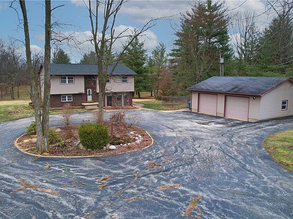 Immaculate split-floor plan that features 400 amp service, 3 bedrooms, 2 full baths, living room and family room with an alarm system. It sits on wooded acreage that includes a gun shooting berm on back of property. Two decks and a patio for your outdoor pleasure and relaxation. Updates include: roof, deck, siding, septic new in 2014; new well pump in 2017; HVAC (heat pump) replaced 2009; windows, doors and sliders replaced in 2006. Garage is 32x28 with a separate meter. You'll also find an enclosed dog pen with a custom-built dog house to match the house! You won't want to miss the opportunity to own this home!