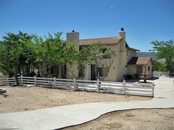 2 story Custom Ranch House with breathtaking hilltop views with paved frontage & easy access to I-5. Privacy, unobstructed from everywhere and yet is easily accessible to metro areas. 6 mi from Quail Lake, 39 mi from Valencia, 67 mi from LA K-town. Family room with wood burning stove, opens to south. First floor bedroom was converted to a library complete with built-in bookcase. Extra wide oak staircase leads to 2 guest bedrooms, a master bed with vaulted ceiling, sitting area and pellet fireplace. Spacious master bath with large jetted tub, separate shower, dual sinks, mirrored walk-in closet. Master Bathroom door opens to balcony to enjoy the mountain views Extensive concrete driveway w/night lights, pipe fencing. 12.5 Acres for an arena for the horse owner or kennels for the dog owner. Hundreds of mature shade & fruit trees and water irrigation system for your own Chef's garden, 2 wells & 2 water tanks (5,000 & 10,000 gal), Solar Leased. 4000 sq ft detached garage incl 2 RV garage.