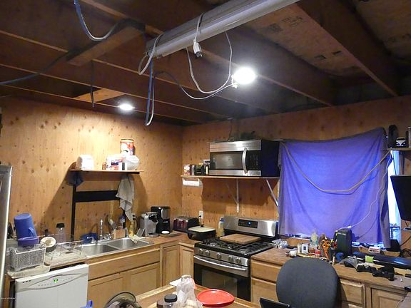 Quiet, Private spot with well, septic and power! Cabin is livable and cozy, heated with wood boiler. On borough maintained road; Just needs some finishing touches. Detached woodshed with wood boiler. 4 total lots that will all be sold together. NO COVENANTS OR RESTRICTIONS. Just over a mile from public access to Island Lake for fishing. As-Is property.