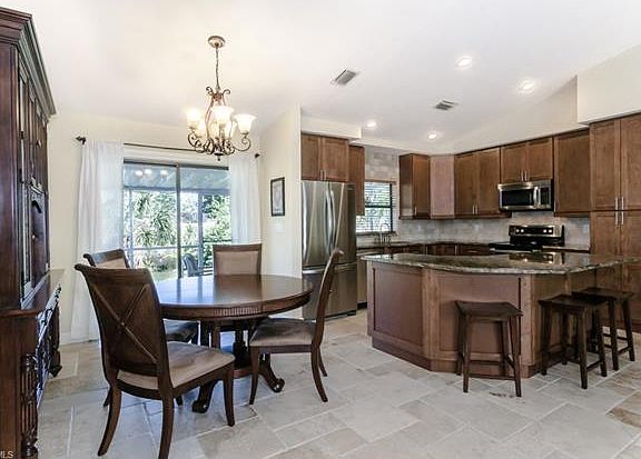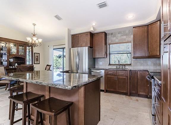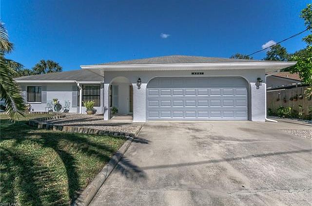 Enjoy entertaining, look no further. We have the highly desirable open floor plan for you. Bring your canoe and fishing pole. This is one of the very few homes on the market situated on a canal lot featuring a water view. Enjoy your evenings or weekends watching the birds, turtles and fish. French doors off the master open up to a patio for evenings under the stars. This luxury kitchen offers stainless steel appliances, high end shaker style cabinets, granite countertops, tumbled stone backsplash and soft close drawers. Throughout the entire home you will find chiseled stone floors set in a French pattern. No expense was spared on the remodel of this home. The AC has been recently replaced. The owners have kept this home meticulously maintained. Plenty of storage with a two car garage and a large shed. You will find a great park within walking distance to the home. This home is located close to local shops, restaurants, gas stations and only a 10 mile drive to local beaches and downtown Naples. Located in a non gated community without any HOA fees!! Make this your dream home today!