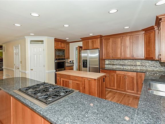 - Kitchen Features: Cabinets Stain, Pantry, Stone Counters, Kitchen Island, Pantry Walk-In, Breakfast Room