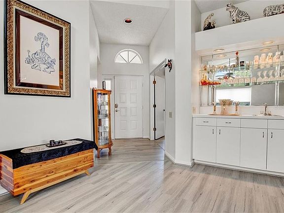 Be part of one of the best golfing communities around. This house is in Peridia Golf and Country Club. The home's great room offers plenty of natural sunlight, high vaulted ceilings, a wet bar & sliding glass door that lead to the super private pool area. Double doors lead to the 3rd bedroom, currently used as an office. The kitchen has an island with quartz counters, SS appliances, wood cabinets, closet pantry, eating nook w/built ins & sliding glass doors to the private side patio off the kitchen. The master suite features a walk-in closet, double sinks, spa tub, separate shower & toilet area and even a skylight. The current owner has been busy remodeling the house; Including new floors, custom built-in closets, and a stunning guest bathroom. The caged pool area comes with a covered lanai and is a great space to entertain friends and family and enjoy the solar heated pool year-round. Peridia Golf and Country Club offers 18 holes, tennis courts & a clubhouse restaurant! Perfect location for everything you need to access from: groceries, retail, restaurants, and the beach.