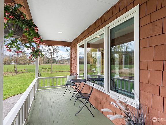 Striking the perfect balance between modern luxuries & rural living, this private 15 acre estate is truly unmatched. The charming, single story 3 bed 1.75 bath home boasts vaulted ceilings, exquisite woodwork & maple floors throughout. From a top-of-the-line chef's kitchen to a light filled primary bedroom with ensuite bath and heated floors - flawless craftsmanship & custom touches decorate every corner of this well thought-out home. The perfect property for an Equestrian or aspiring hobby farmer, with classic gambrel style barn with loft, tackroom, equipment storage & workshop space. Three matted stalls open up to all-weather turnout & acres of crossed fenced pasture. Outdoor riding arena, garden spaces & a peekaboo Mount Baker view!