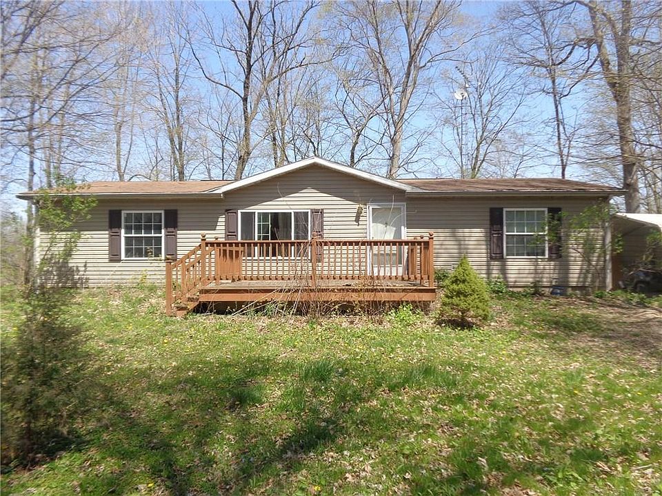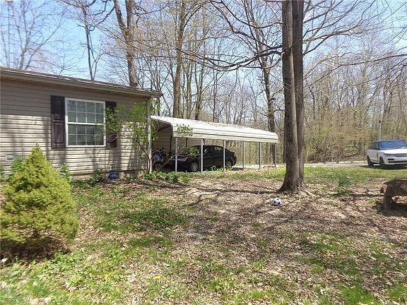 7.35 ACRES with CLEAR CREEK running through property. Three bedroom two full bath home. Living room with cathedral ceiling. Dining area, breakfast bar in kitchen with oak cabinets, gas range, refrigerator, dishwasher and hood vent fan. HVAC replaced in 2015. Large concrete rear patio. 32x62 pole barn. Approximately 4 acres tillable in bottom field currently cash rented. Two car carport. Playset included.