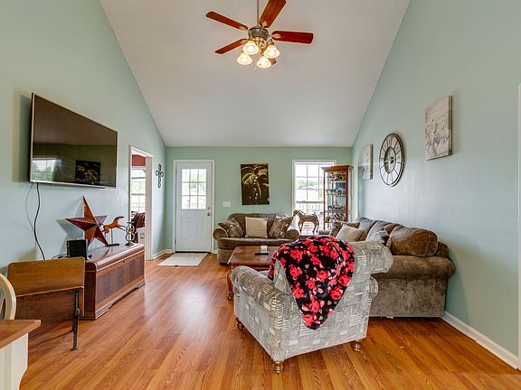 ranch home on 5.03 acres/ fenced for horses/ barn w/ stalls/ 3 bedrooms and 2 bath home, split bedrooms, open great room with laminate flooring, nice size eat in kitchen, over sized deck with above ground pool only a year old, // flat and rolling land/ new central heat and air /privacy fence / no carpet