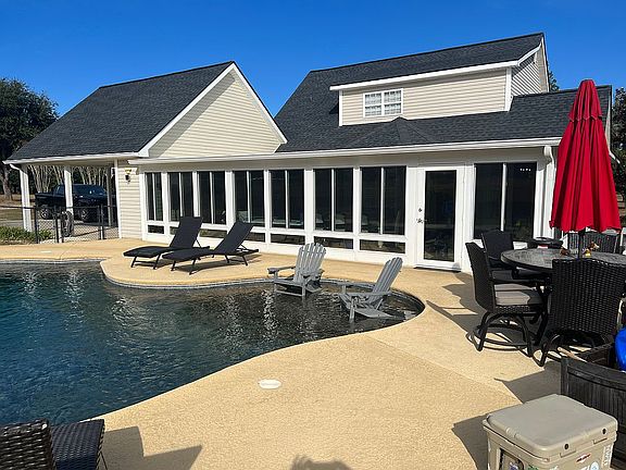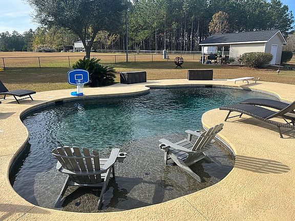 3 bedroom 2 1/2 bath home. Room above carport is finished and currently being used as a fourth bedroom. Beautiful in ground gunite pool with in floor cleaning system on 5.66 acres. Entire home has been updated, including new countertops and master bath. Recently added sunroom on back.