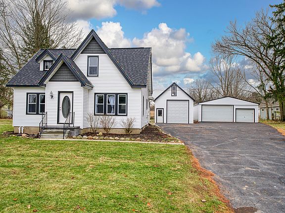 All the farmhouse charm with none of the old house worries! Recently remodeled inside and out with updated mechanicals, fresh flooring, paint, primary ensuite bath and gorgeous chef's kitchen w granite countertops, farmhouse sink, brand new appliances and soft close cabinetry! Basement is clean, dry and tall and offers great potential for finishing for added living space. There are 2 detached garages both feature new siding and roof. 16.5x44 with 11' ceiling and 30x30 with 10' ceiling. Plenty of space for parking 5 or more cars, housing your hobbies or creating a great workshop space. Garages have cement floors and expansive driveway is asphalt, keeping dust and dirt to a minimum. Seller has agreed to convey any/all potential land divisions. Bring your family and your lifestyle d reams to this rolling acreage with no home owner's association!