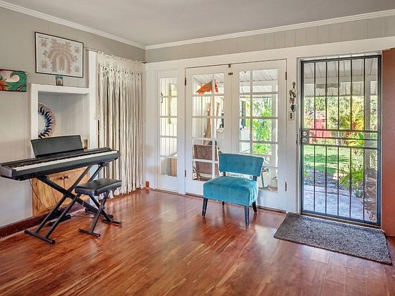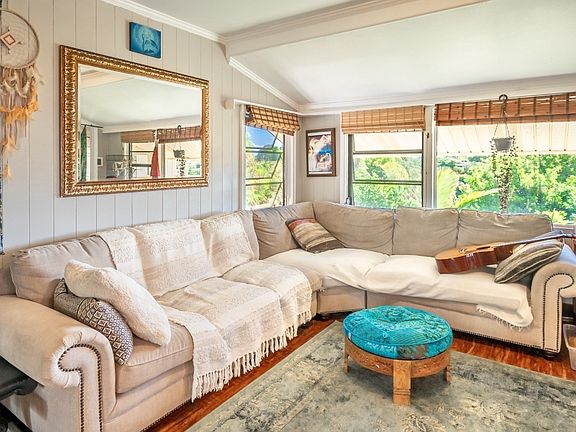 A rarity, this classic Hawaiian style home has been lovingly updated in a sweet neighborhood close to schools, churches, and downtown Kapaa. With spacious rooms and an open floor plan, this home offers flexible options for a family or long term rental opportunity. Upstairs there are 3 bedrooms plus a bonus room currently being used as a 4th bedroom, 2 full bathrooms, and a spacious, modern kitchen. Beautiful cabinetry, new flooring, granite counter tops, and a custom built dining table with benches are in the kitchen. Classic windows allow for tradewinds to blow through. Downstairs there is a bonus area with another bedroom and bathroom. Fruit trees and flowers surround the well kept yard, and the views are expansive all the way to the mountains towards the south. 36 solar panels (owned by seller) provide hot water. The street side has a redwood fence with a cute gate and arbor. This home is a must see!