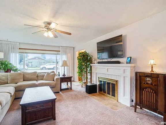 Cute 3 bed/1.5 bath on large lot in desirable Keizer neighborhood. Living room with large windows and fireplace with gorgeous mantel. Kitchen has 2 ovens, stainless steel fridge and stone countertops. Dining room slider door leads out to covered patio and large fenced yard with raised garden beds. Master bedroom has large bathroom with beautiful tile backsplash and new tub. Roof is only 6 years old, original hardwood floors under carpets and new paint in bathroom/hallway.