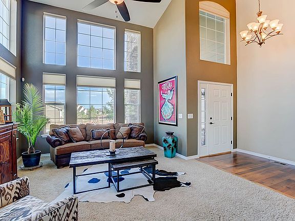Beautiful Parker home situated in Pradera golf community overlooking 11th fairway. This home has all the modern luxuries including walnut hardwoods and top of the line finishes and is tastefully decorated with Colorado style. Gourmet kitchen with SS appliances, large island with bright casual eating area and formal dining room. Four bedrooms upstairs, including a large master suite with sitting area and fireplace. 5 piece master bath and large walk in closet with upgraded new built ins. Jack and Jill bath with private sinks and walk in closets. Large lower level office/or 5th bedroom and Half bath. New hallway wall finished with white washed reclaimed wood. Updated fireplace with stone and tile with 100 year old mantle. Laundry room recently remodeled with new mudroom adding square footage. Great flat backyard with privacy. Built in gas fire pit and gas grill. Equinox louvered roof patio cover with remote control. Perfect for entertaining. Walking distance to Pradera pool. Just minutes from top rated Douglas county elem,middle,and high school. MUST SEE!!!