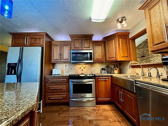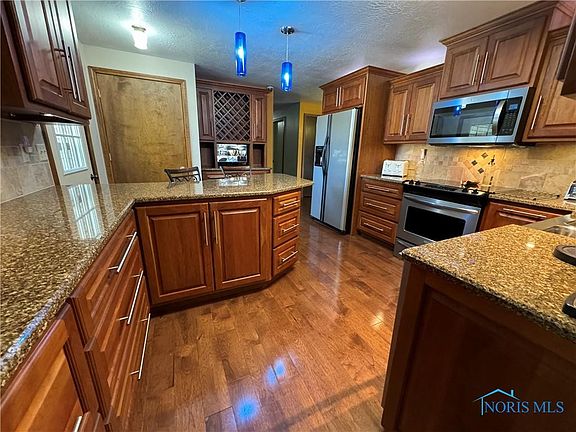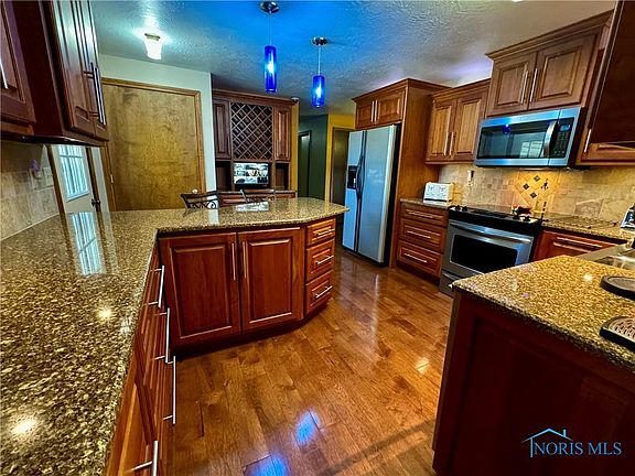 RARE FIND! 3 bedroom, 2 bathroom RANCH home on a full finished basement!! Located on a quiet corner lot just outside of Hicksville. This property has an extra detached garage and pond! This home has been meticulously maintained and has had many updates over the years including a custom kitchen remodel & new hickory flooring (2011), the roof (2013), windows & siding (2011), and new heat pump (2020). 28x28 carpeted living space and an additional 28x25 workshop/storage area in the basement. Don't wait, this home won't last. Schedule your showing today!