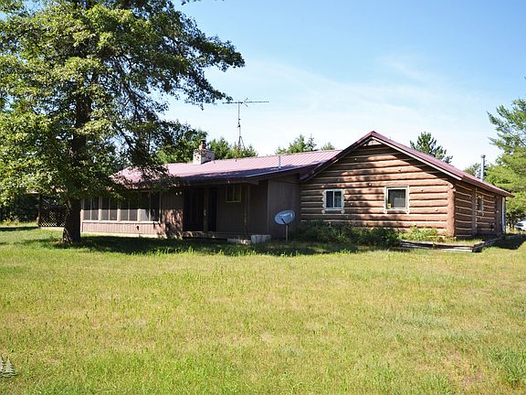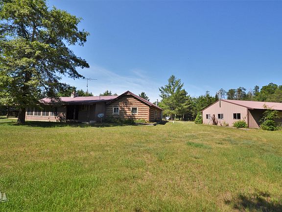 Spacious permalog, ranch style home on 4 acres with 2 pole barns. The house features 2 bedrooms, an office, 2.5 bathrooms, 3 season sun room, great kitchen with breakfast nook, tile flooring and woodstove in living room. Property touches state land and is across the road from snowmobile trail system and close to the AuSable River. Make this home a full time property or relax with a great vacation getaway.