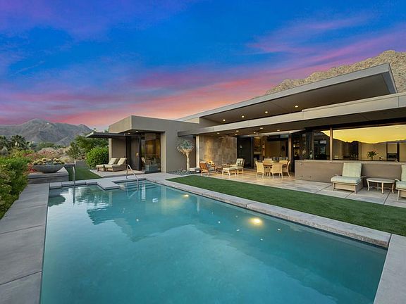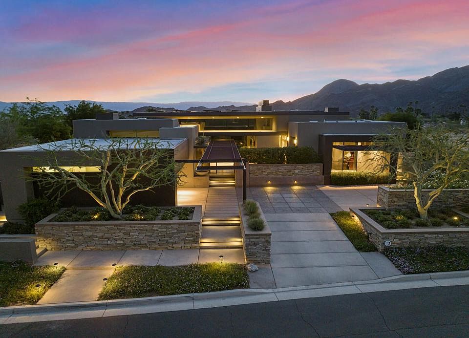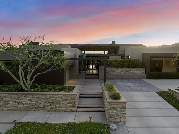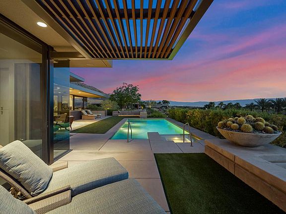 Ironwood CC | BIG Panoramic Views | Modern Architectural Masterpiece | Custom Design | Private | Luxury Living - Tremendous engineering, structural steel and design details went into this impeccable Solar powered high efficiency home. Striking Architecture offer eye-catching curb appeal, softened with natural stacked stone, designed by noted Architect Frank Urrutia. As you pass through your courtyard entry, immediately your eyes are drawn through living space and walls of glass to big open mountain, vista and down valley views, offering only the best in desert lifestyle living. A warm open design interior with walls of glass offers arguably the best panoramic views in Ironwood. Open great room with living and dining room fireplace and hidden TV, big open view cooks kitchen with island, walk-in pantry, dry-bar for entertaining and direct outside BBQ Island. Glass doors open to the outdoor living room with fireplace, your private pool and spa, wonderful mountain and pool view sitting area, low maintenance artificial turf and as mentioned BIG VIEWS. Inside, den-media-library space off great room for TV and relaxation. The primary suite is spacious and luxurious, offers amazing views, has double walk-in closets and direct laundry access. Three guest bedrooms, one ensuite are light and bright, each with private patio access. Powder room features custom under-counter lighted onyx stonework. Oversized double garage has ample room for 2-cars and 2-golf carts. You will love this ho