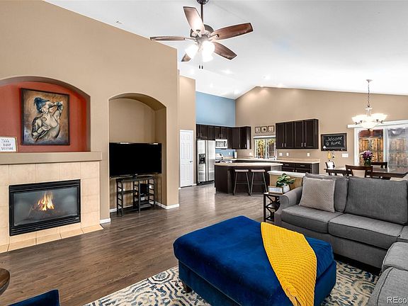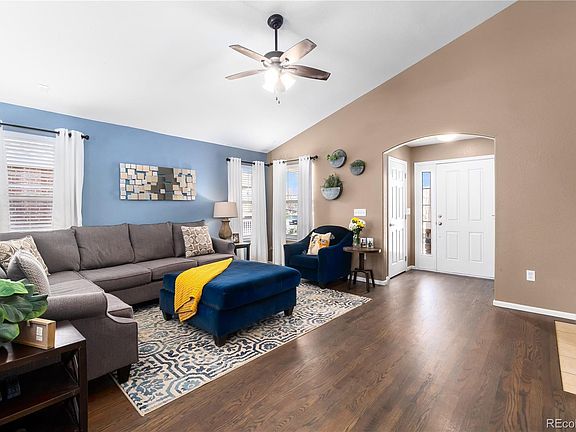 Welcome to a bright and inviting home in the Tollgate Crossing community close to Southlands shopping, quick access to 470, parks just a block away, schools and more. Stonework greets warmly painted wood planks along the siding of the home and opens to a covered front porch. Enter through the foyer, into a large, warm living room space. Homeowners will enjoy a variety of architectural details, such as a modern open concept living/kitchen area, arch details, vaulted ceilings, recessed lighting, gas log fireplace, oversized island, and more. Hardwood flooring sprawls throughout the main level. Bedrooms are spacious and bright. The master features a retreat-like ensuite 5-piece bath, walk-in closet and new carpet. The backyard is easy to maintain and fenced, and the oversized garage provides plenty of space for storage. Schedule your in person or 3D showing today.