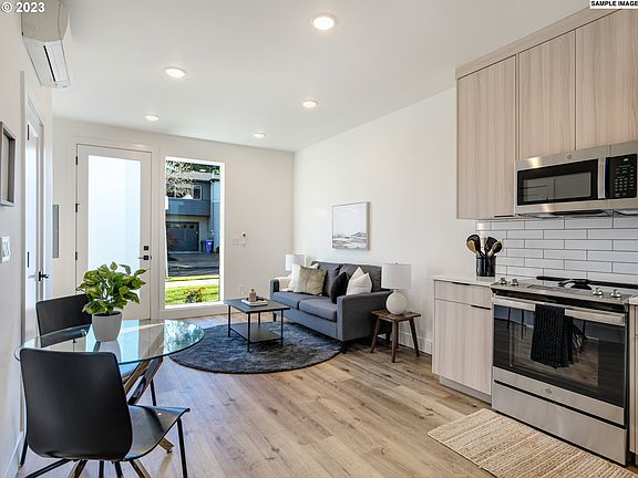 PHENOMENAL + hard to find Woodstock location meets elevated design + modern architecture with this gorgeous new construction home! Impeccably designed, you'll find warm tones across this open concept floor plan boasting a light + bright feel with a covered back patio & a private, fenced yard! Coveted AC included! High-end finishes grace each space with a custom kitchen featuring modern + warm cabinetry, quartz counters, extensive tile backsplash and upgraded, SS appliance package. Tall & coffered ceilings, sleek black fixtures, stylish lighting + designer tones finish out this custom, 2 bed/2.1 bath interior! 98BikeScore puts you in the hub of one of the hottest neighborhoods + just blocks to idyllic restaurants, shops + coffee! Enjoy low HOA dues plus 1-year builder warranty with peace of mind from a local, quality boutique builder!(List price is subject to the buyer qualifying for the Portland Housing Bureau - System Development Charge exemption program to promote affordable housing in Portland, call for more info.)