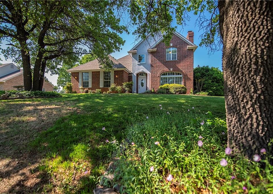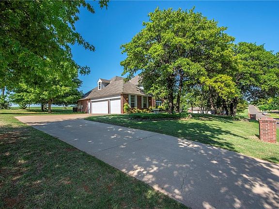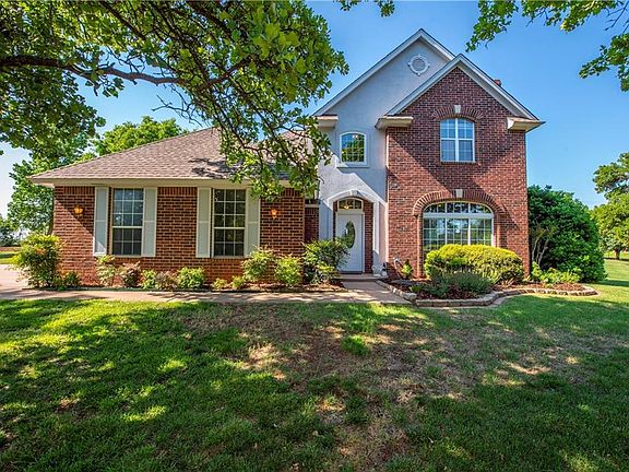 You can be on CIMARRON NATIONAL GOLF course for under $190,000! Your front door faces AQUA CANYON #3, right next to CIMARRON NAT'L #7. Beautiful view and near the water. 2018 UPGRADES: New hardwood in LR, entry, DR and hall. New Carpet in all 3 bedrooms. 3 new exterior doors. Kitchen quartz counters and island and new backsplash, sink, faucet. NEW paint exterior and interior. New bath vents and light fixtures. Downstairs Master bed and bathroom features two vanities, shower and jetted tub and walk-in closet. Upstairs is a landing w 3 closets, 2 queen size bedrooms with Jack and Jill bathroom. All bedrooms have large walk-in closets. Walk-out attic/bonus area is floored and has electricity and AC duct ready to go. Outside has 8x10 storage bldg, storm shelter, oak trees, red bud trees, garden area and patio. City water and septic w lateral lines. House wired w DSL line and COX and AT&T are available. Ceiling fans in all bedrooms, LR and entry. Utility w storage. Half bath downstairs.
