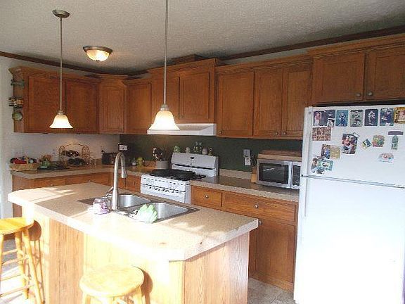 Public Remarks: (GREAT PRICE) Hobby farm. This 3-bedroom/2-bath home is located on 21.3 acres, on a block foundation with 3 steel beams for support; 7.6 acres of grapes, 7 acres of open farm land, 6.7 acres wooded with apple trees--great for deer and turkey hunting. House features modern oak kitchen with center island, snack bar, pantry, under cabinet lighting; attic space; master bedroom with walk-in closet and master bath, garden tub, separate walk-in shower; 9 x 12 laundry/mudroom; dining room with wood-burning stove; 26 x 36 barn with upper floor; 20 x 30 pole barn; creek running through the property. Call soon.