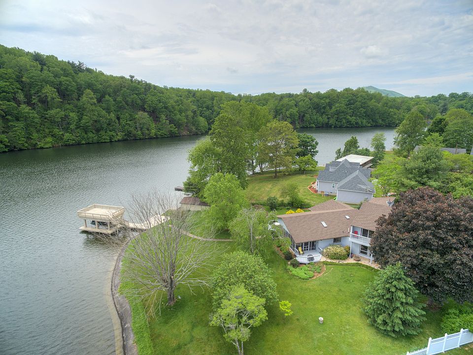 Imagine slipping away from the hustle and bustle to a quiet lakeside retreat where the worries of the world melt away. Picturesque is only the beginning of this desirable Claytor Lake location with a level acre lot, no steps to the water, 189p of water frontage and panoramic lake views. A private escape to ski, tube, fish, take a scenic cruise or simply sit quietly and enjoy sweeping lake views. The sun drenched open living and dining area will certainly be a favorite gathering place with hardwood floors, stone gas fireplace, beamed ceilings and big window views. A delicious kitchen is ideal for multiple cooks with granite counters, custom cabinets, tiled backsplash, butlers pantry with sink, serving bar and an island. The family room and an amazing connecting screened porch overlook the lush lawn and lake, perfect for casual lake front entertaining. A dreamy main level master suite offers deck access and a pampering bath including a soaking tub, walk in shower, dual vanities and tile. Three soothing upper level bedrooms, two with private balconies! Slip on down to the waterfront dock with boat lift and upper level deck, one could happily linger all day long. Quality landscaping, large mature trees and open grassy areas on a sprawling lake front offers plenty of room for sun, play and entertainment. Ideal for year round vacations or easy access to Virginia Tech events this Claytor Lake home is perfect for investment, personal use or year round living. Schedule a showing today p this is an exceptional home where you can create the most treasured memories for your family!