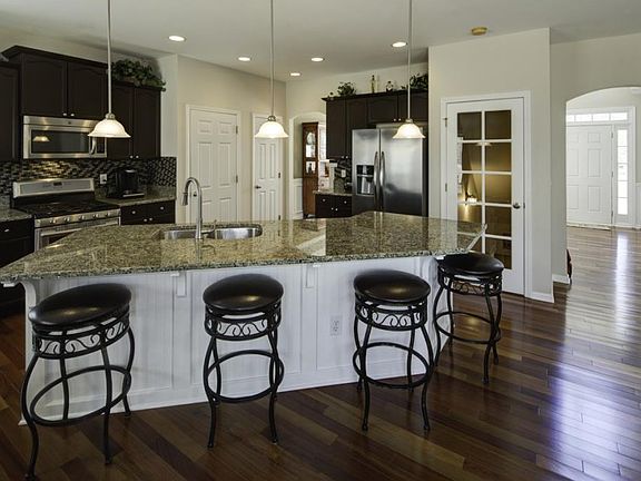 - Kitchen Features: Island, Breakfast Area, Cabinets Stain, Pantry, View To Fmly Rm, Counter Top - Solid Surface