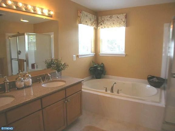 Welcome to this beautiful, bright and sunny home which is meticulously maintained and nestled on a lovely tree lined lot in the popular community of Hearthstone. Enjoy summer evenings on your back deck which overlooks a large private yard, the perfect place for your family gatherings. Step inside the open two story foyer with hardwood flooring extending into the kitchen. The kitchen has 42 cabinets and a spacious center island with updated quartz counter tops and stainless steel appliances. The open floor plan is perfect for large gatherings with a large family room area with newer carpeting, enhanced with lovely windows and a large slider that leads out to the deck. A formal living and dining room are enhanced with crown molding. There is a private office which overlooks the rear yard. All include newer carpeting. The convenient first floor laundry has pottery barn style built in bench seating and place to hang your backpacks and lunch boxes. A first floor powder room is located just off the kitchen. Upstairs the carpet is also recently replaced. The master suite features a tray ceiling and an enormous walk in closet with tons of shelves and storage. The master bathroom has tile flooring, double vanity and huge soaking tub. Three additional bedrooms all have large closets and share the hall bathroom. The finished lower level has large bright windows, newer carpeting and is the perfect place for an exercise room, play room or just additional family living space. There is also a large unfinished storage area. A large two car garage with opener offers extra storage as well. The entire home is visually pleasing with neutral up to date paint colors for your decorating pleasure. The community is enhanced with lovely walking trails and fresh water ponds. The neighborhood is just minutes to downtown Doylestown or Peddlers Village. Don't wait, make your appointment today
